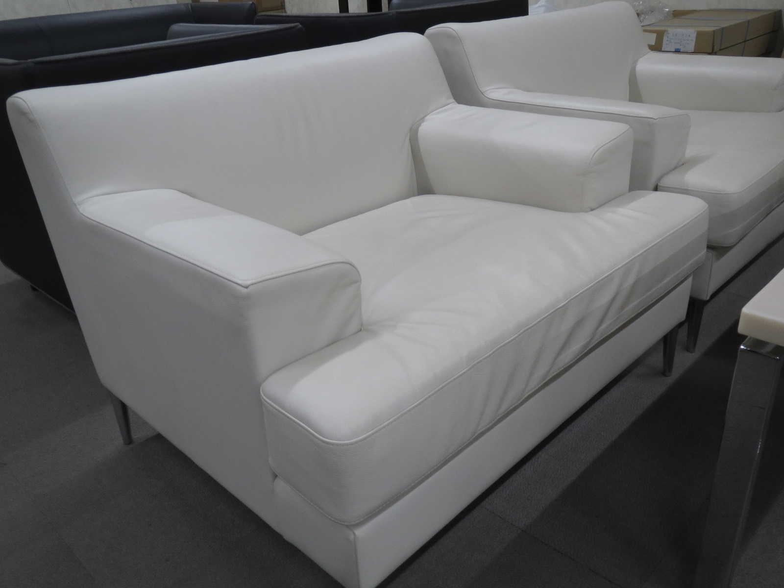 色・素材:ホワイト、本革、ビニールレザーコンビ貼り